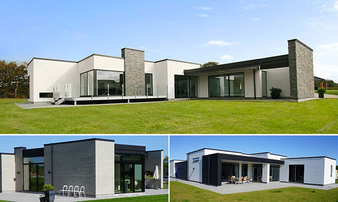 Alle de viste huse er designet med baggrund i kundens ønsker og drømme. Kontakt AB Huset hvis i ønsker et gratis skitseoplæg på jeres drømmehus, hjælp til arkitektarbejde eller et tilbud på opførelse af jeres bolig efter allerede udførte tegninger.