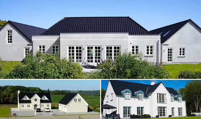 Alle de viste huse er designet med baggrund i kundens ønsker og drømme. Kontakt AB Huset hvis i ønsker et gratis skitseoplæg på jeres drømmehus, hjælp til arkitektarbejde eller et tilbud på opførelse af jeres bolig efter allerede udførte tegninger.
