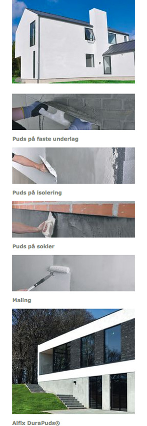 Pudsede facader udsættes for store prøvelser ved skiftende vind og temperaturforhold, og ikke alle pudsløsninger beskytter lige godt mod vejrliget, med krakelering og afskalning til følge. Alfix kommer med 4 stærke produkter til vægge og facaderprodukter.
