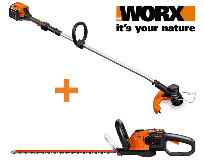 Kombisæt med både hækkeklipper og græstrimmer fra Worx 40 volt batteriserie. Begge maskiner leveres inkl 1 batteri af samme type, således at man altid har et ekstra batteri uanset hvilken maskine man bruger. Ladetid på batteri: 60 min.