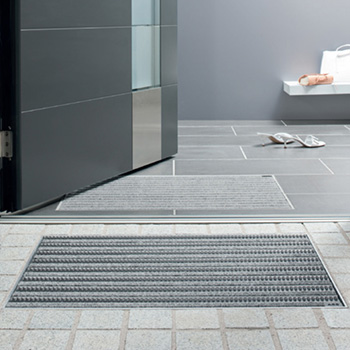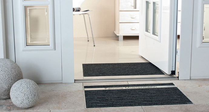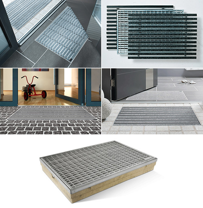 Til indendørs brug findes der rammer i aluminium som enkelt sænkes ned i klinke- eller vinylgulve.