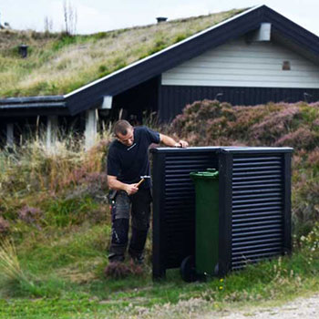 Få din nye affaldsafskærmning leveret direkte til dit hus eller sommerhus, og få fagfolk til at montere affaldsafskærmningen – på et sted du har anvist.