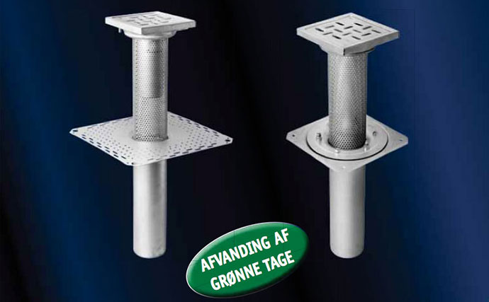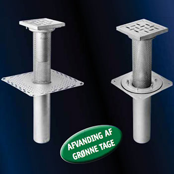 Afløb i rustfrit stål for taghaver/grønne tage og over garager under jord.