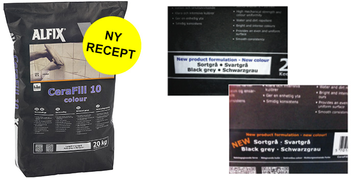 Alfix har justeret på recepten for fugemassen CeraFill 10 colour i farven sort grå.