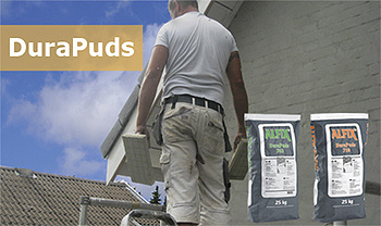 Håndværkeren får med DuraPuds et praktisk produkt i hverdagen, som sikrer et flot og langtidsholdbart resultat. Indledningsvist består den nye Alfix familie af produkterne DuraPuds 710 – en fiberforstærket hæfte- og tyndpuds og DuraPuds 703 – en indfarvet vandskurings- og filtsepuds.