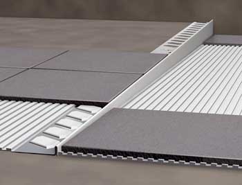 Fliserne i profilområdet skal sættes fast uden hulrum. Fugerne imellem flise og skinne skal være imellem 1 og 1,5 mm, og fugen fuges med almindelig fugemørtel.