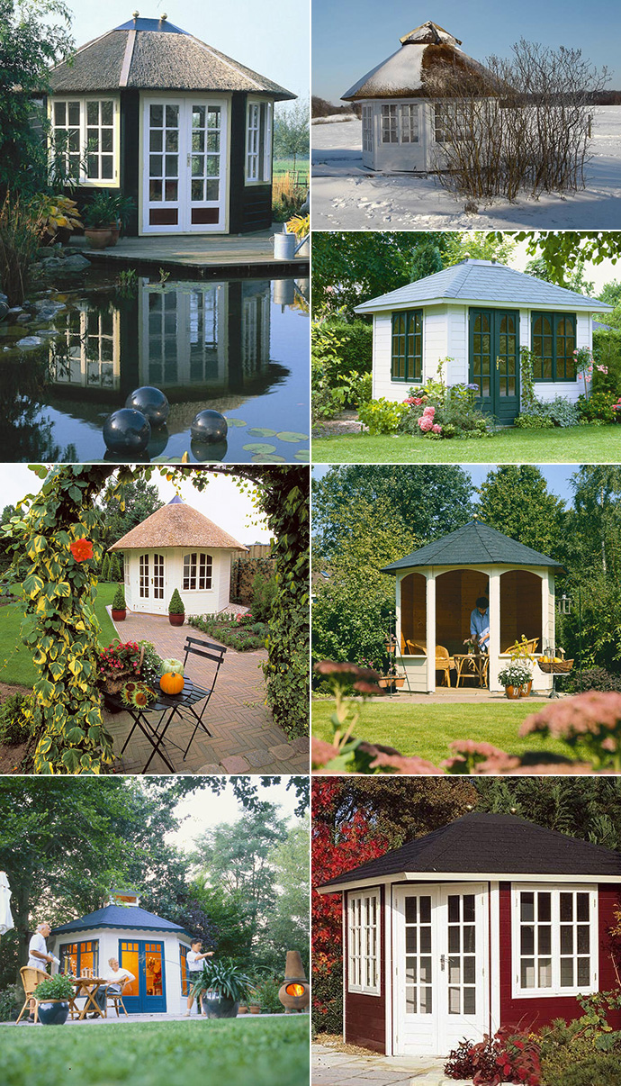 Du kan besøge Pavillon Danmarks hjemmeside for at se de mange modeller. Modellerne fås i et utal af varianter – også til mindre haver.