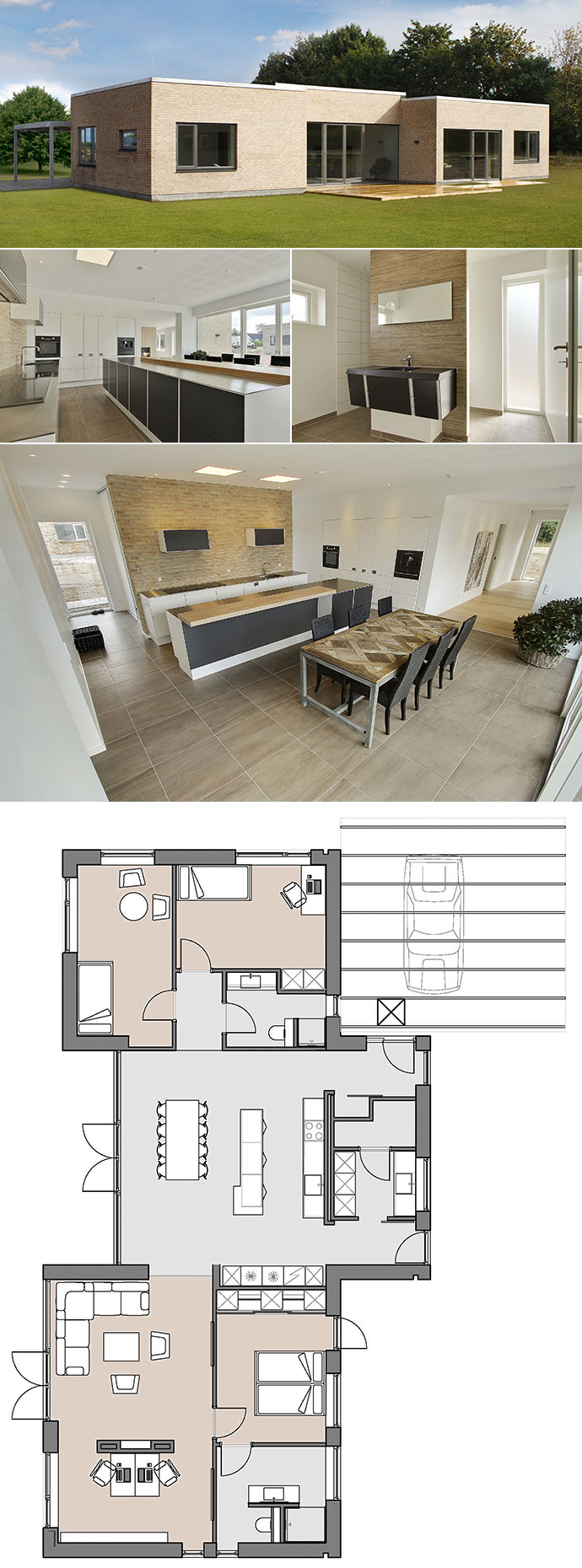 Til huset hører naturligvis også en dobbelt carport og overdækket indgangsparti i samme minimalistiske stil som huset.