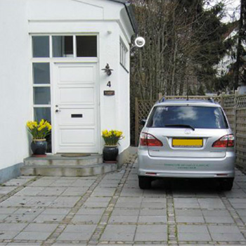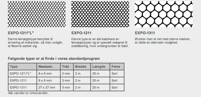 Med EXPO-NET armeringsnet som underlag for indkørslen bliver trykket bedre fordelt, og fliser eller sten bliver derfor liggende, hvor de oprindelig blev lagt.