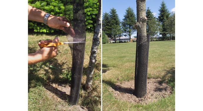 Den specielle maskestruktur på EXPO-NET barkbeskyttere gør træet “synligt” modsat mange andre typer barkbeskyttere, og farven gør, at barkbeskytterne falder naturligt ind i landskabet.