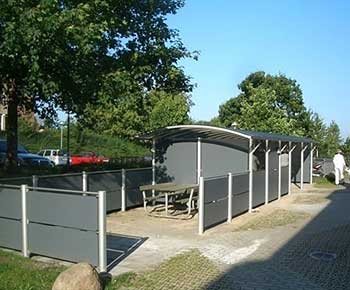 BASES carporte/ overdækninger i system – designet til større bebyggelser, institutioner eller firma domiciler kan BASES tilbyde individuelle løsninger til cykelopbevaring eller som miljøstation.