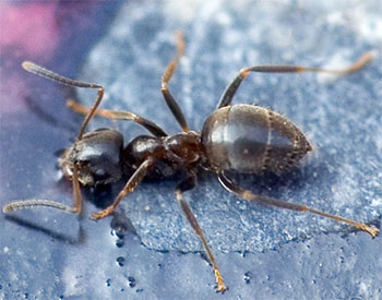 Det er som regel den sorte havemyre (Lasius niger), som giver myre problemer, når den kommer indendørs efter føde.
