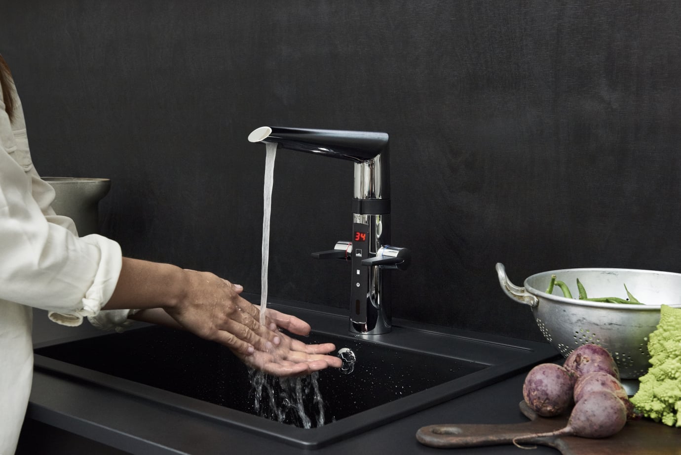 Grundet brugervenligheden og det bæredygtige aspekt, er berøringsfri armaturer til det private hjem blevet endnu mere populære. Der er dog situationer, hvor et berøringsfri armatur ikke helt kan løse ens behov – f.eks. når du skal tappe et glas koldt vand. Hvad er løsningen så? Et hybrid armatur, der kombinerer de bedste funktioner fra et traditionelt armatur og et berøringsfri armatur.