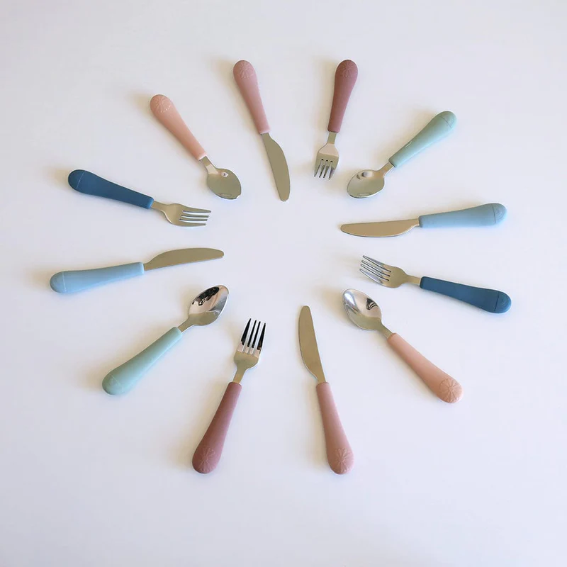 Med sit poetiske design og fine farver er børnebestikket en elegant tilføjelse til familiens middagsbord. Kan med fordel kombineres med de andre spisetidsprodukter i vores silikoneserie.