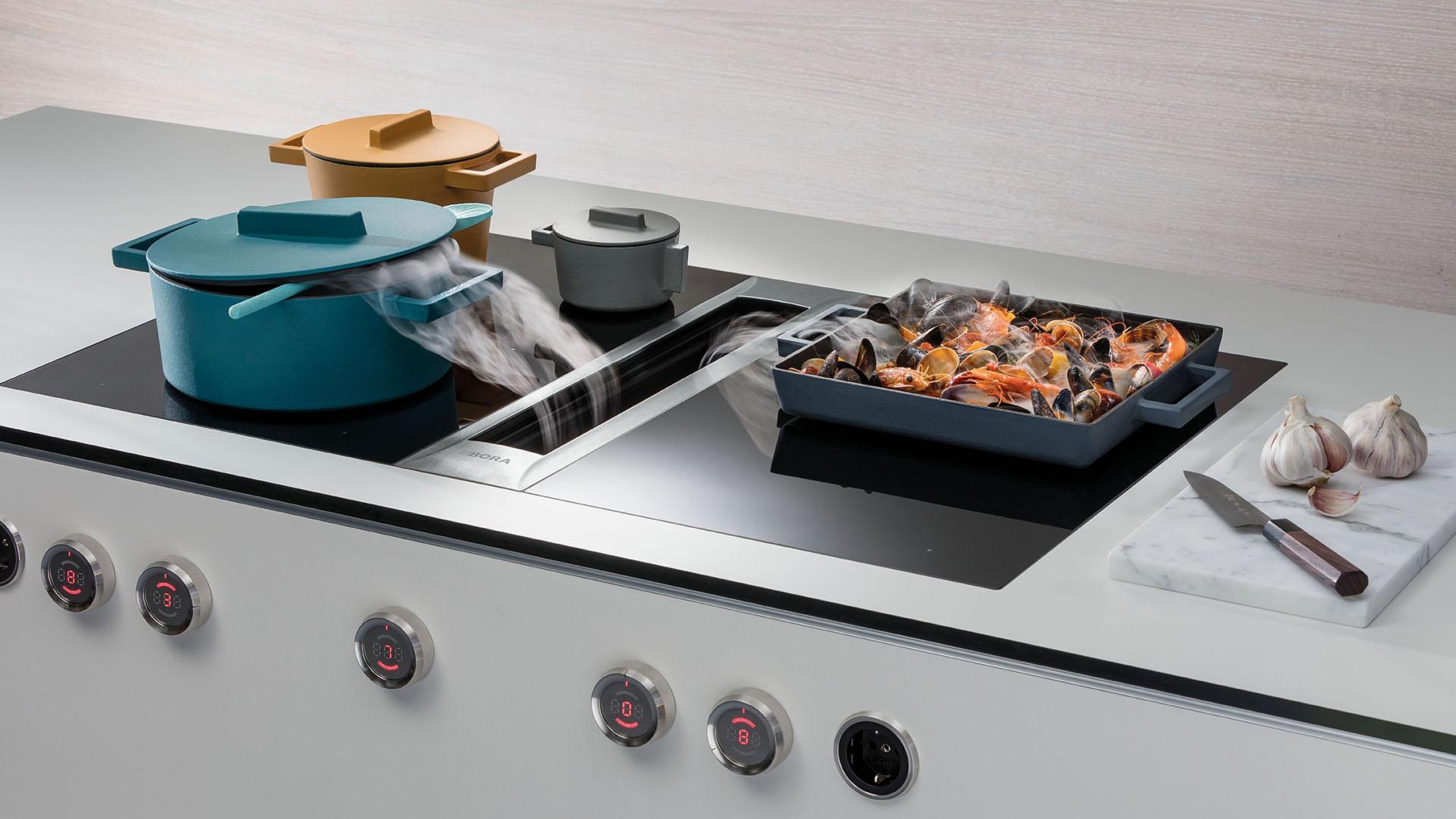 BORA Professional er en kombination af etførsteklasses bordemfang og effektive, ekstra dybe kogeplader.