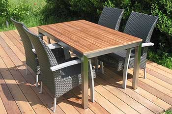 Finérpladen tåler ikke fugt og skal opbevares inden døre eller overdækkes. Den viste plade ligger løst og kan fjernes, som vist på billedet. Dette bord kan stå ude hele året.