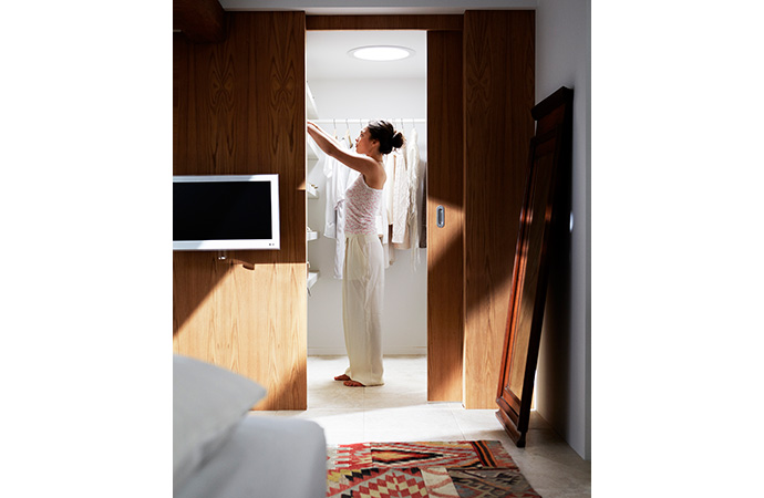 Et walk-in closet har stået højt på mange boligejeres ønskeliste de senere år. Med en VELUX lystunnel kan dit walk-in closet gå fra et mørkt indelukke til et behageligt omklædningsværelse, hvor dagslyset reflekterer tøjets naturlige farver.