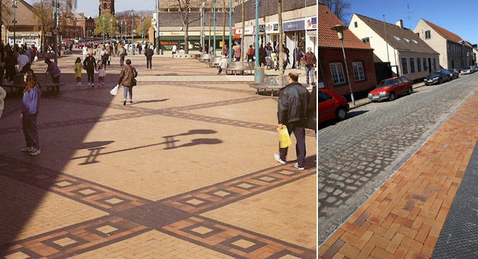 Det er som om vi har set det hele før. Endeløse rækker af grå og triste fliser. Eller store arealer med beton og asfalt. De står ofte i modsætning til hvordan arkitekter, byplanlæggere eller private lodsejere har brugt andre materialer som f.eks. tegl som belægning til at skabe udtryksfulde rum i byen og interessante oplevelser for brugerne.