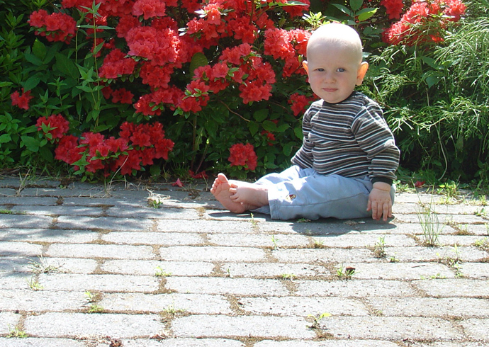 Du kan plante småplanter som stenurt, timian, trædepude eller mos i fugerne. Bland lidt muldjord i gruset til furerne. For at beskytte de små planter mod slid, skal grus/muldblandingen ikke gå helt op til kanten.
