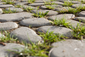 Du kan også anlægge en grøn indkørsel med græsarmeringssten – en slags belægningssten med hulrum i, hvor der kan vokse græs, og som regnvandet kan sive igennem.
