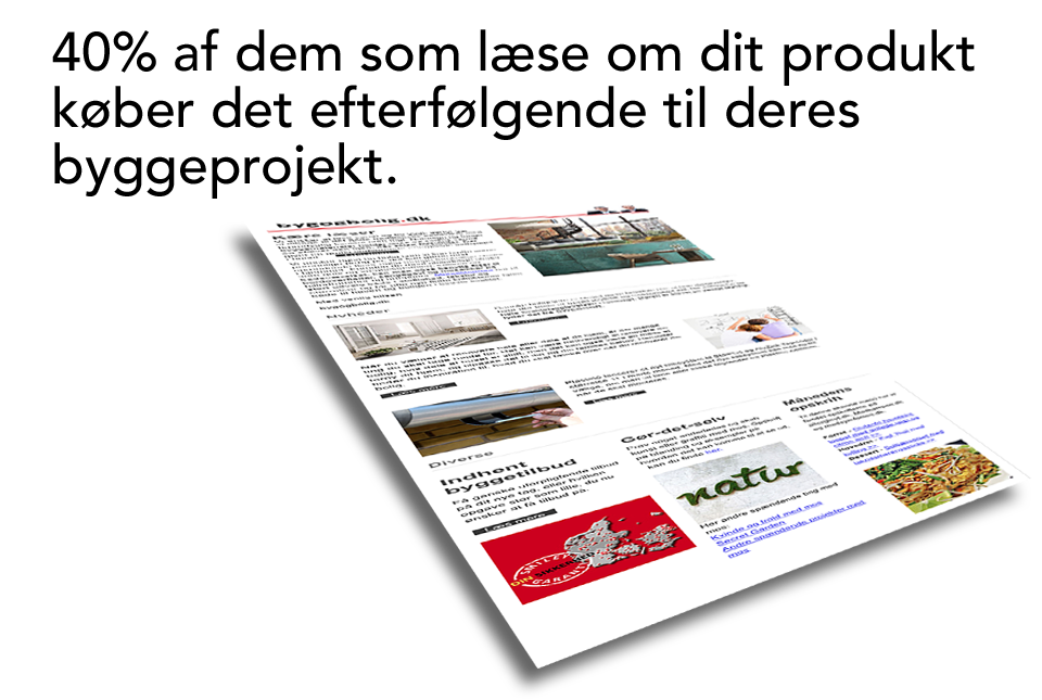 Få en redaktionel omtale af dit produkt overfor boligejere og håndværkere. Vi modtager gerne din pressemeddelelse og byggetips.