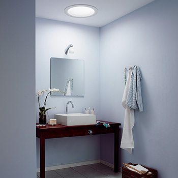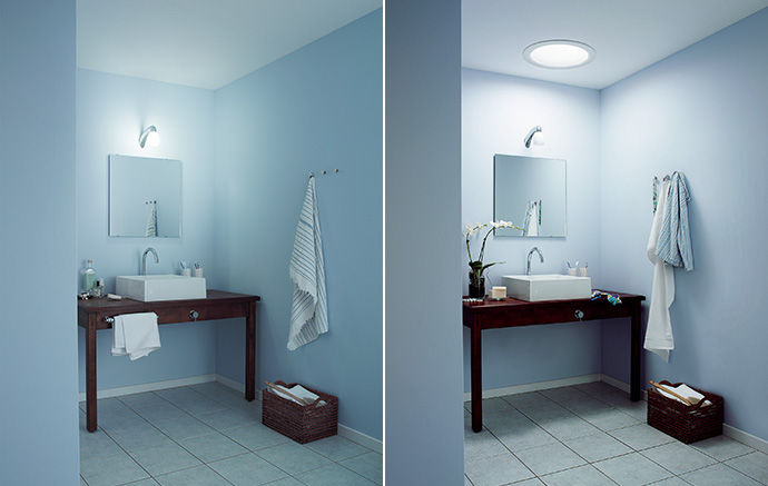 En VELUX lystunnel kan føre dagslys ind i mørke badeværelser uden vinduer. På den måde kan der spares på energien, fordi elektrisk lys er unødvendigt, og man får samtidig et naturligt lys, når man står foran spejlet.