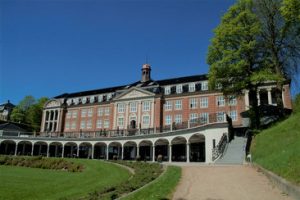 Det rokoko- og renæssanceinspirerede bygningskompleks blev oprindeligt kendt under navnet ”Julemærkesanatoriet”. Det er opført for midler, der stammer fra salget af julemærker. Det var postmester Einar Holbøll, der fik idéen til verdens første julemærke, der udkom i 1904. Byggeriet, der var budgetteret til 600.000 kr., blev igangsat i 1907. Det skulle dog hurtigt vise sig at blive langt dyrere, da det var nødvendigt at pilotere den bløde undergrund ned mod fjorden ved at banke store pæle i jorden. Den endelige byggepris blev en million og sanatoriet, der behandlede tuberkuloseramte børn, stod færdigt i 1911.