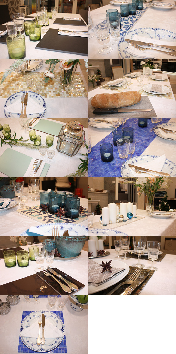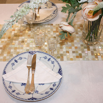 Tænk kreativt og brug fliser, klinker og mosaikker som dekorationselementer eller service i din borddækning.
