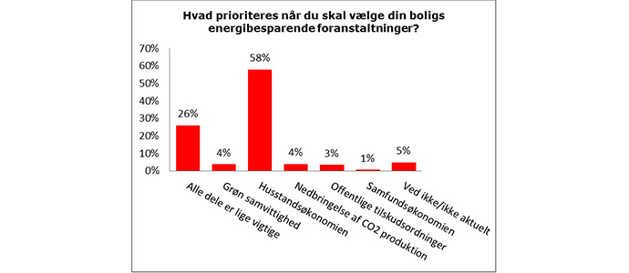 Danmark har i mange år været helt fremme i debatten om vedvarende og grøn energi, og ikke mindst nedbringelsen af den globale CO2-udledning. Adgangen til grøn energi ligger af samme grund højt på den politiske dagsorden, men den grønne samvittighed kan være økonomisk betinget. En ny rundspørge foretaget af VELUX Danmark A/S viser, at over halvdelen af de adspurgte prioriterer husstandsøkonomien over både CO2 reduktioner og grøn samvittighed.