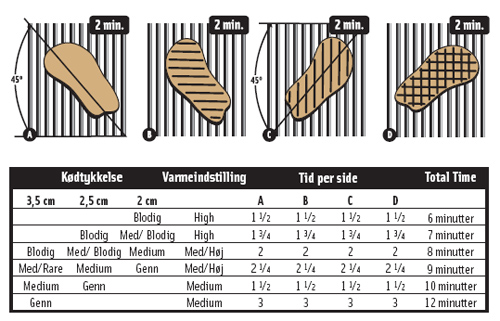 For at opnå det perfekte steakhouse diamantmønster, følges diagrammet neders på siden.