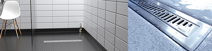 PURUS Line gulvafløb til klinkegulv med rustfri rist leveres som en samlet pakke – sampak indeholder: afløb, ramme, klemring, hårrist, NOOD-vandlås og monteringskit til træ- og bentonmontage. Ramme og rist er støbt i rustfrit stål og udløbet er i plast. PURUS Line findes i mange længder, ristmønstre og udløb.