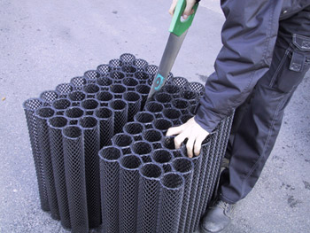 BIO-BLOK® regnvandsfaskinens kapacitet er afhængig af jordens nedsivningsevne, dvs. hvor hurtigt vandet kan trænge gennem den jord, som faskinen er nedgravet i. Derfor er det vigtigt, at der skabes en god kontakt til jorden, så vandet kan sive ud og væk fra faskinen.