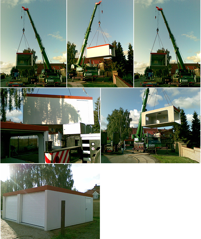 Her kan du se de spændende montagebilleder af opførelsen af en dobbelt garage i Jyllinge – fra morgen til aften.