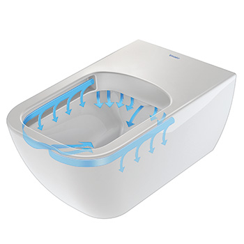 Den intelligente skylleteknik med det dynamiske vandskyl giver en optimal skylleeffekt. Vandet løber ned i kummen med jævn kraft, og det gør, at hele den indvendige overflade skylles fuldstændig igennem. Toilettet er desuden vandbesparende, da det er forberedt til 4,5 liters skyl.