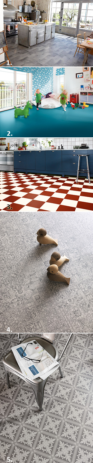 I den nye kollektion Trend står gulvet mere frem med herlige mønstre og stærke klare farver. Helt i tråd med det mod, nordiske forbrugere er begyndt at vise tegn på i deres valg af gulve. Måske passer de farveglade gulve allerbedst i børneværelset, hvor Istanbul og Ornamental Grey kan bruges i et køkken eller entré.