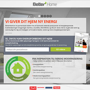 Beregneren på betterhome.today hjælper dig i gang med din energirenovering, du skal blot taste din adresse ind, så får du et oplæg med et overslag på investering og udbytte. Indtaster du efterfølgende telefonnummer eller e-mail, bliver du kontaktet af nærmeste BetterHome håndværkspartner, der er uddannet til at gennemgå boligen på tværs af faggrænser.