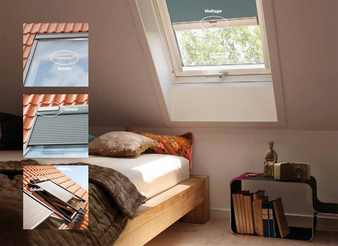 Den automatiske styring af solafskærmning, VELUX Active Klimakontrol, der introduceres i juli 2010, kan også benyttes til solcelledrevne rulleskodder, så du uden elektricitet
