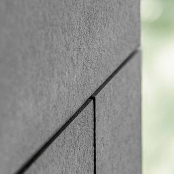 EQUITONE Materia er en gennemfarvet, mekanisk overfladebehandlet fibercementplade designet af og til arkitekter. Pladen har en lidt rå overflade, som minimerer patinering.