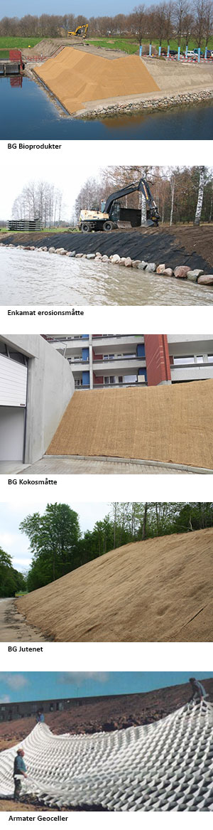 BG biomåtter og bionet er en række produkter, som bruges til enkel og besparende erosionssikring. Biomåtterne er biologisk nedbrydelige, let at håndtere og installere.