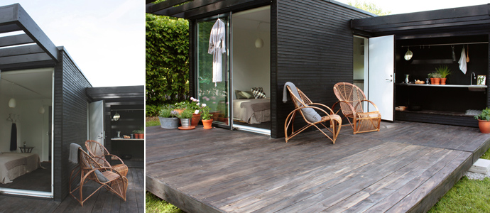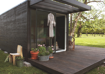SUPERWOODs profiler er med til at give det lette indtryk, som understreges af det enkle formsprog, de store skydedøre og terrasserne omkring huset. Et hus på blot 15 m² giver masser af ekstra plads til teenageren, de voksne børn eller vennerne, der kommer på besøg i flere i dage.