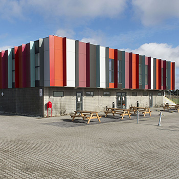 – Facaden var vigtig for os, fordi designet krævede flere forskellige, men nøje udvalgte, farver, som jo er en væsentlig del af visionen om at matche klubbens spilledragter. Fra start af var vi derfor på udkig efter en leverandør med en bred farvepalette inden for facadeprodukter, og valget faldt på Cembrit og deres facadeplade Cembrit Metro, siger Rune Boserup.