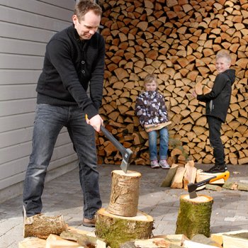Når kulde, blæst og regn rammer vinduerne, vælger flere og flere familier at lade en brændeovn danne rammen om indendørs hygge med spil, leg og sjov. Skal brændet købes i butikkerne, kan det dog hurtigt blive en dyr fornøjelse. Derfor er Fiskars nu klar med en serie økser, der gør det nemt for familien at fylde brændekurven selv.