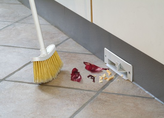 Firmaet Frithiof i Birkerød har nemlig videreudviklet centralstøvsugeren, så anlægget nu også kan omfatte en automatisk fejebakke, der monteres diskret i skabssoklen og betjenes med en let fodbevægelse.