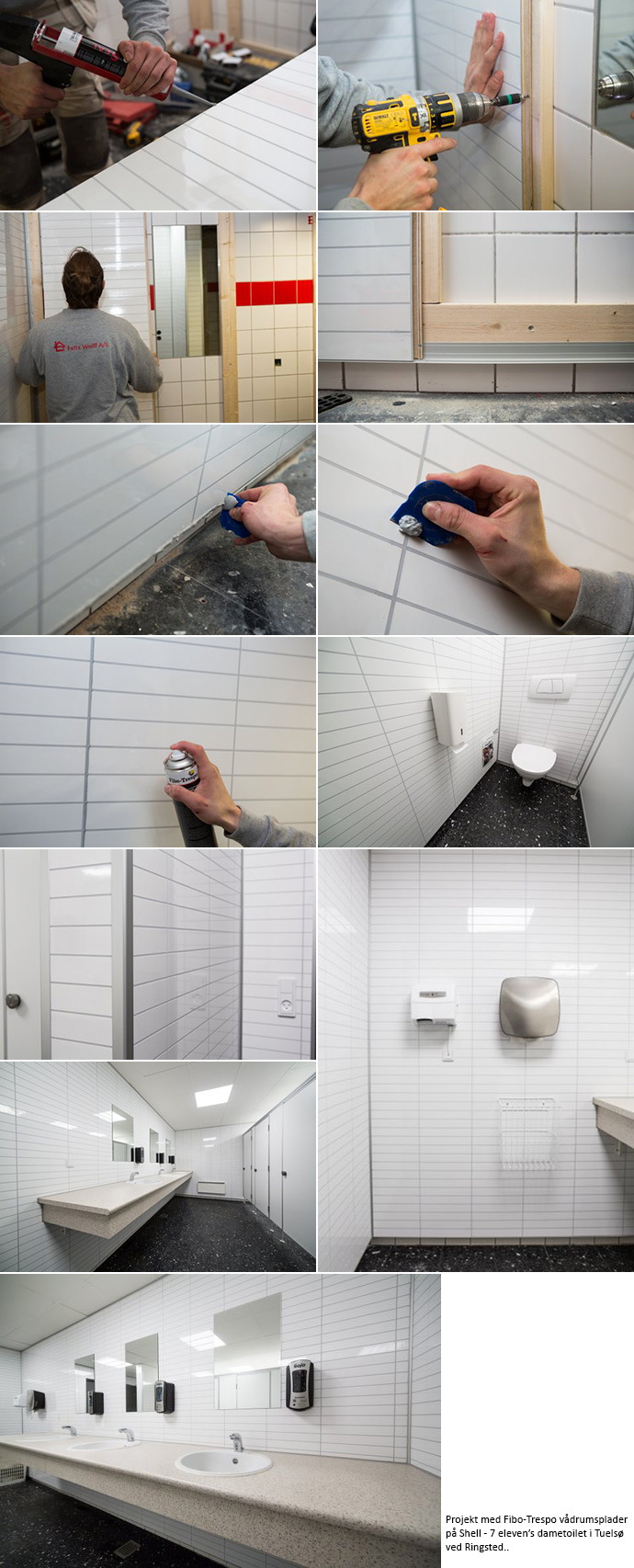 Håndværkerfirmaet Felix Wolff A/S i Hillerød vandt sagen om renovering af toiletterne på en døgnåben Shell i Karlslunde nordgående retning. De vandt den på grund af de ville benytte Fibo-Trespo vådrumspaneler. Panelerne er laminat også i flisefugen og derved suger den ikke sort tusch til sig, hvis der bliver tegnet og skrevet på panelet.