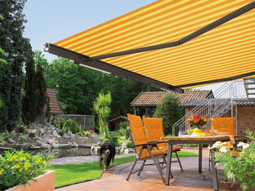 Stellet på din nye markise fra Faber er pulver lakeret og kan leveres i alle ral farver. Dugen er et kapitel for sig selv, men også her er det den bedste kvalitet og findes i 160 forskellige farver og mønstre. Så er du til ensfarvet hvid eller striber i regnbuens farver, så er der nok at vælge imellem. Du får 5 års garanti på din markise, men du kan godt regne med, under normale forhold, at du har markise i 15-20 år, og skulle du få lyst til at få en anden farve dug på senere, kan den selvfølgelig udskiftes