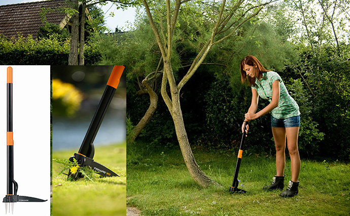 I kampen mod de sejlivede pælerodplanters genstridige rødder er Fiskars praktiske mælkebøttefjerner en effektiv hjælper. Når mælkebøttefjernerens fire ståltænder trædes ned midt i planten, griber de nemlig hårdt fast om det øverste af roden. Herefter vippes skaftet, hvorved den lange rod trækkes op sammen med planten.