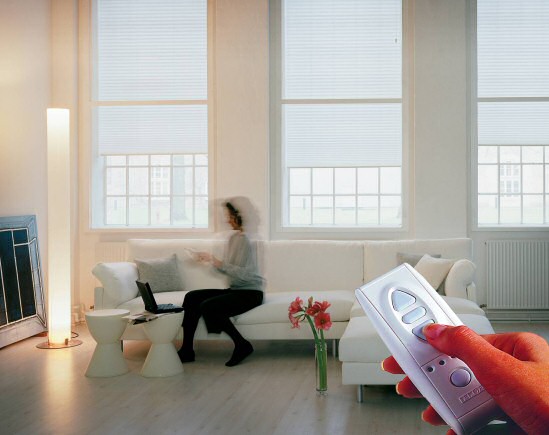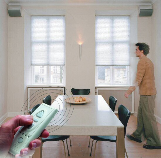 Gardiner i hele boligen kan styres med én og samme fjernbetjening, som nemt rækker tværs gennem huset. De nye, fjernbetjente muligheder er blevet til i samarbejde med virksomheden Somfy, der bidrager med den anvendte radiostyrede teknologi.