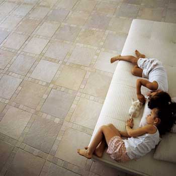 Flagstone har en let skifer-agtig struktur i overfladen, der vil give dit gulv et rent og imødekommende look.