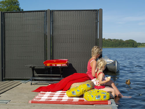 Giv for eksempel parcelhusets terrasse et pift med et superenkelt, kulsort læhegn, der udfordrer de multifarvede havehynder og udgør en beroligende baggrund for hjemlig havehygge. Eller bring et strejf af Sydspanien ind foran den gennemmoderniserede funkisvilla, hvor et læhegn i diskret sand og et hav af knaldrøde blomster danner en dejlig oase i hverdagen.