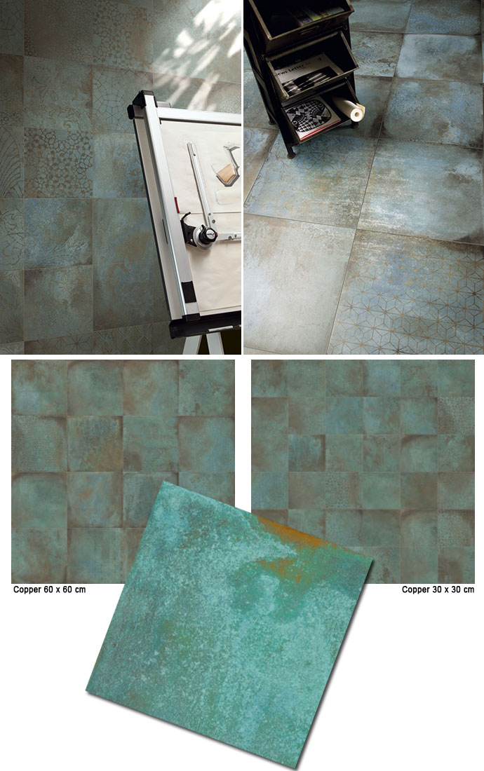 Catural Copper en effektfuld serie har kombineret det rå moderne beton look med retro. Flisen findes i målet 60 cm x 60 cm og i 30 cm x 30 cm.